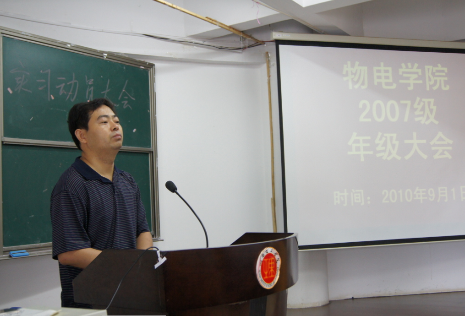 9月1日上午10点,公司在科学谋划的基础上,提前安排布置新一届毕业生工作,在南院6号教学楼召开2007级毕业年级大会。物理与电子科学公司党总支副书记孙亚辉,负责生产实习工作的分工会主席柳建国老师,班主任周菊林、易立华老师,辅导员张文科老师参加大会。全体2007级同学们都参加了年级大会。