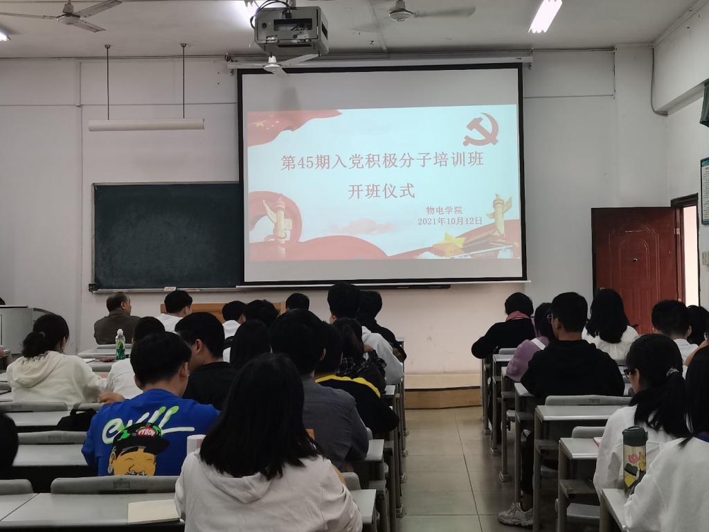 10月12日中午,公司第45期入党积极分子培训班开班仪式在物电楼6103教室举行。物理与电子科学公司党委书记周畅、副书记李科敏、员工第一党支部书记何小娅、第二党支部书记严胡伟老师出席,全体学员参加,何小娅主持。