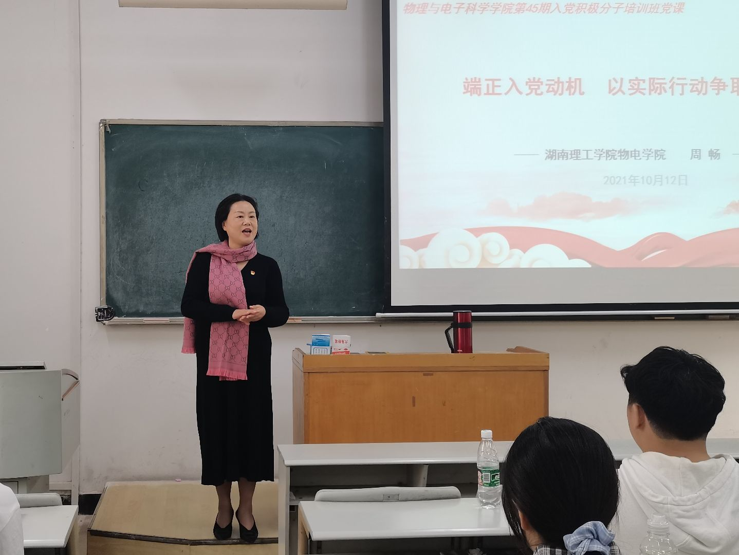 仪式结束后,周畅讲了第一堂党课《端正入党动机,以实际行动争取早日入党》。