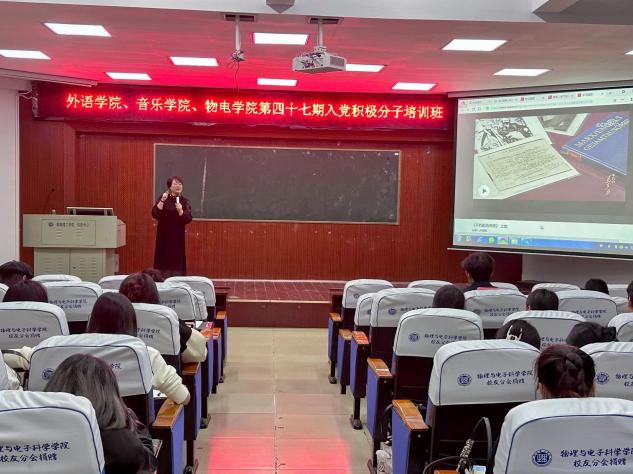 11月8日,物电、外语、音乐公司第四十七期入党积极分子培训课第二次集中党课在6栋学术报告厅开讲,物理与电子科学公司党委书记周畅主讲,外语公司党委书记王敏出席并主持,三公司第四十七期入党积极分子参加。