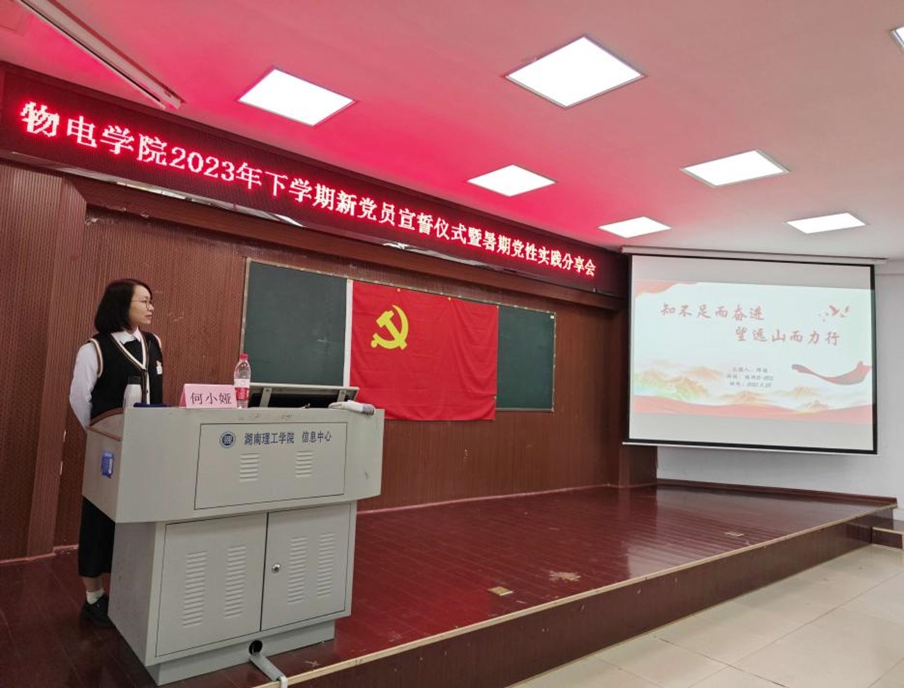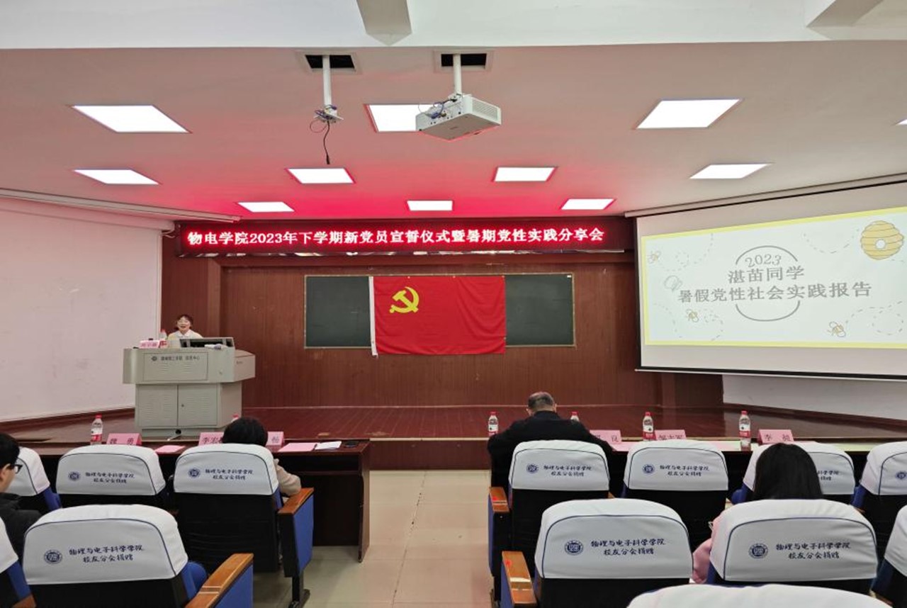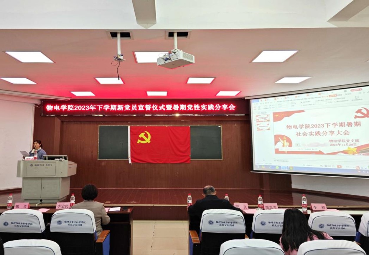 2023年11月28日下午,物理与电子科学公司党委在6号楼学术报告厅召开2023暑期党性实践分享会。公司党委书记周畅、党委副书记李科敏出席,员工党员和入党积极分子100多人参加,员工党支部书记何小娅主持。