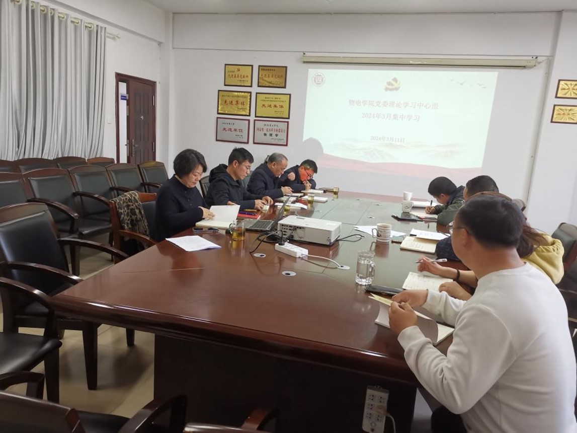 3月11日下午,物理与电子科学公司党委在6205会议室举行2024年度第2次集中理论学习,主要内容是学习习近平总书记关于解放思想的重要论述。中心组全体成员、党支部书记参加,党委书记周畅主持,邹志军领学原文,魏勇和李科敏做中心发言。