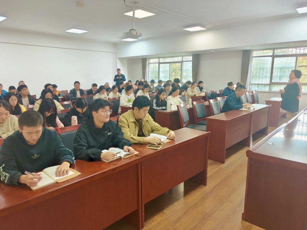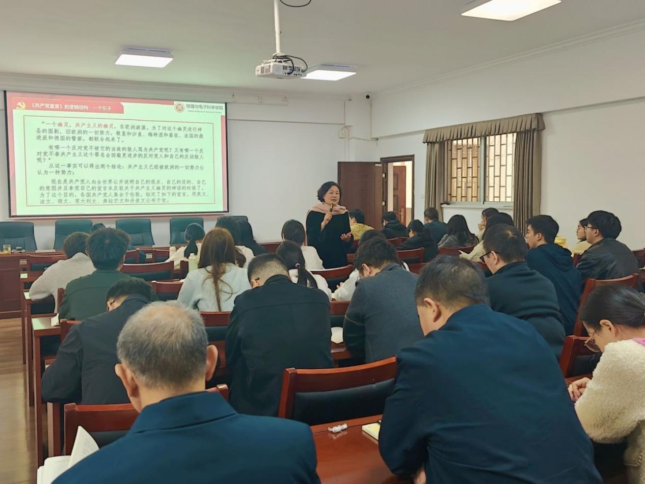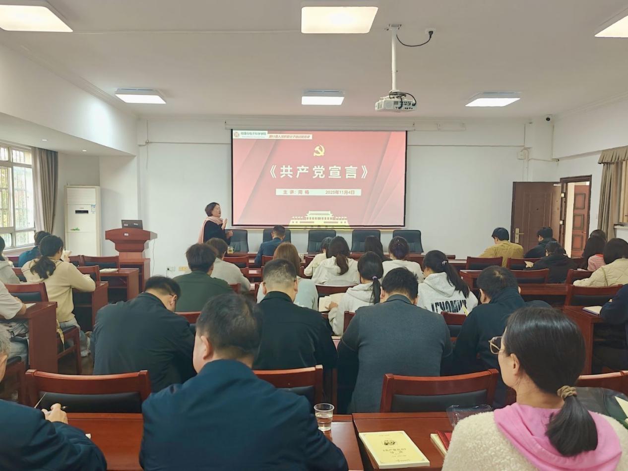 11月4日下午,物理与电子科学公司党委书记周畅在6211会议室给全员教师党员和53期入党积极分子讲授《共产党宣言》专题党课。