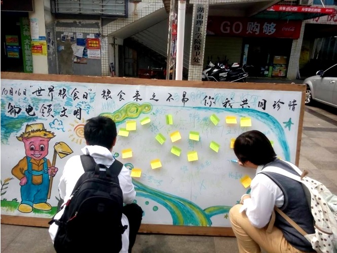 2014年10月16日,World Food Day。在第34个世界粮食日里永利集团3044am学子发起了“爱粮节粮,争做“光盘”女神”为主题的系列教育实践活动。