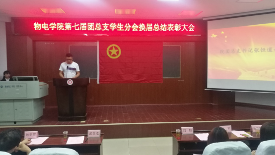 2017年6月19日晚上7点,公司在6栋学术报告厅举行了第七届团总支员工分会换届总结表彰大会。物理与电子科学公司党总支副书记孙亚辉、团总支书记张恒道、物理专业员工党支部书记何小娅、第七届团学分会全体干部干事和2016级全体同学参加了本次会议。