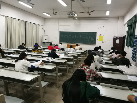 为了避免与新生们的上课时间冲突,更方便新生们参加笔试,此次笔试安排在7点30分到9点。笔试开始前,教室就已聚集了不少新生,等待笔试的开始。