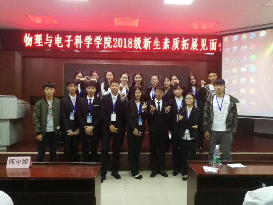 9月28日,永利集团3044am于物电楼学术报告厅召开18级新生素质拓展见面会,出席大会的有团总支书记何小娅,第九届团学分会主席吴松俊,副主席赵峰,以及各个部长,参加大会的有18级新生。