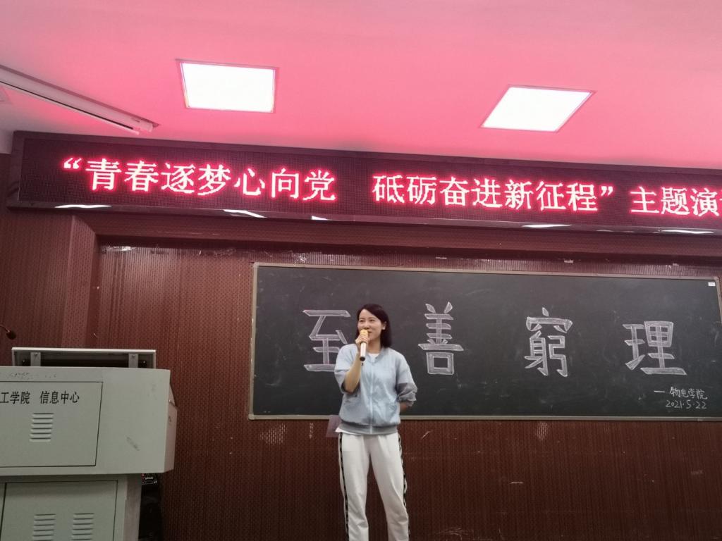 为献礼中国共产党成立100周年,展现物电学子向上向善的精神风貌,5月22日晚,永利集团3044am于六栋学术报告厅举行了“青春逐梦心向党,砥砺奋进新征程”主题演讲比赛决赛。研究生辅导员许邕子老师、第十五届演讲比赛优秀选手彭惠和团学分会主席团部分成员及学习部部长担任此次比赛评委,19级、20级部分员工观赛,共计10名选手参赛。