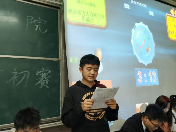 11月2日,公司为了激励同学们奋力追寻梦想,理智面对人生道路上的坎坷,公司在6t1和6t2教室开展“思辨杯”初赛,主持人分别是吴斯涛与唐佳宁,韩刚、杨冉、贺文洁、伍文洁等人分组担任评委,每组比赛正辩和反辩各四人,以及数余名员工前来观赛。