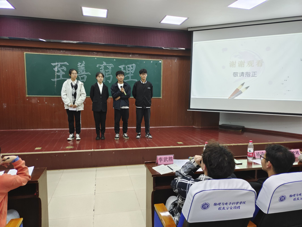 大赛开始,主持人介绍完相关情况后,各组参赛选手依次上台进行展示。他们结合PPT,从作品理念,创新思维,纪念意义及商业价值等方面对自己的作品做出详细介绍,并由各评委进行点评和提问。各组选手的设计品极具特色和内涵,集妙想与灵思于一体,体现了物电学子对公司深沉的爱。