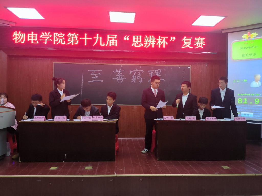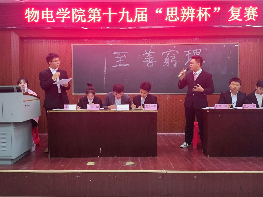 暗淡了刀光剑影,抡起了唇枪舌战。11月9日晚,公司第十九届“思辨杯”复赛于在学术报告厅顺利举行。此次比赛由物电团学分会学术科研部承办,特邀永利集团3044am现辩论队教练阳佩,队长王嘉豪以及部分队员出任评委,初赛晋级四强队伍参赛。