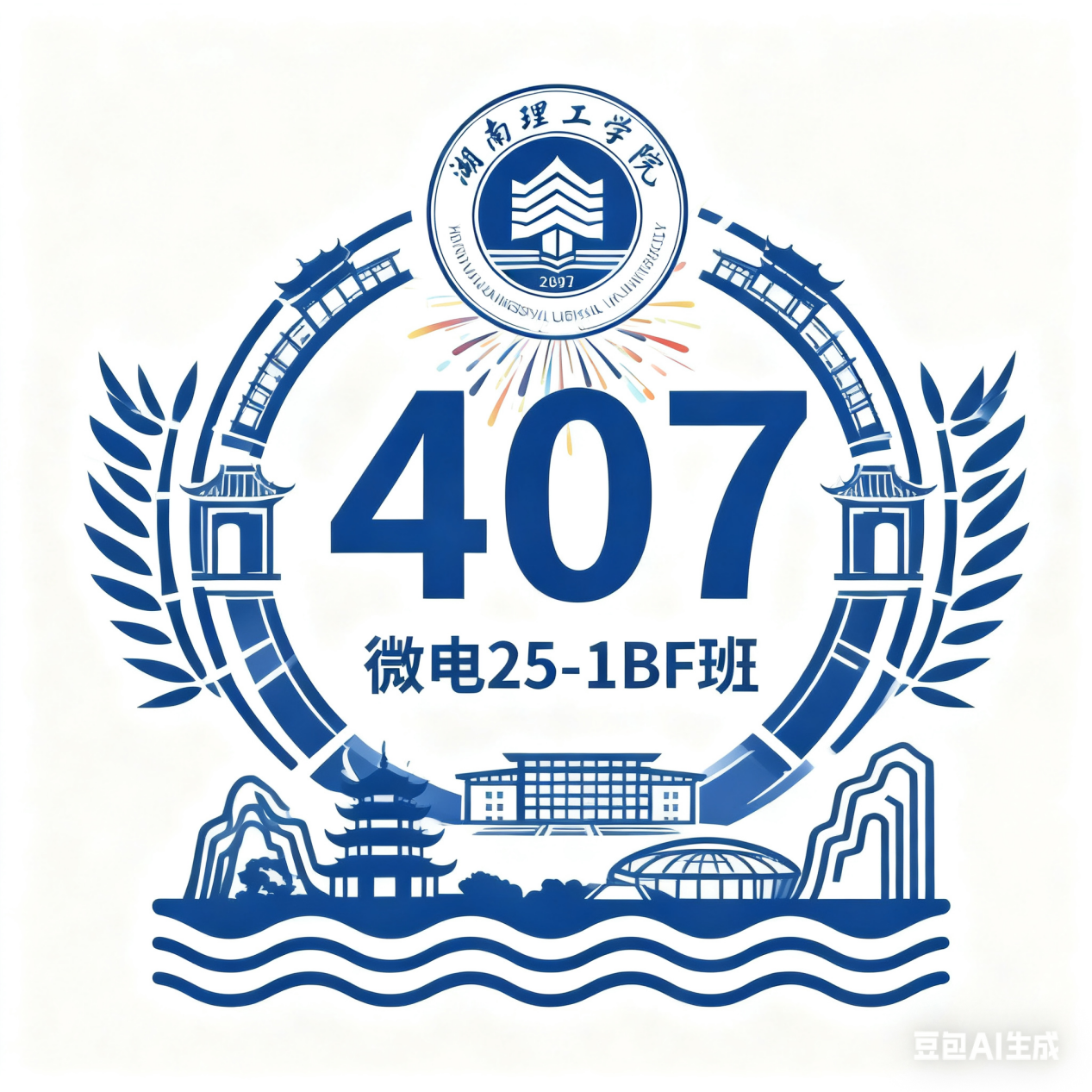 407的标识自带“工科生的专属浪漫”!蓝白配色清新简约,既贴合工科专业的科技感,又透着沉稳大气的气质。设计中巧妙融合校徽与湖湘建筑元素,将对公司的热爱与专业特色融入其中,简约却不简单,恰如寝室成员们踏实严谨、追求卓越的处事态度。