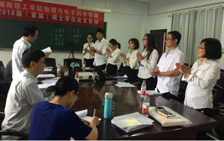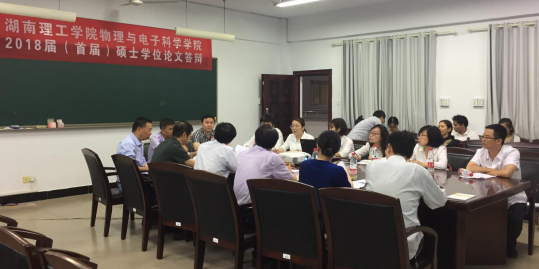 2018年5月26日,永利集团3044am(学科教学·物理)首届硕士学位论文答辩在物电楼205会议室举行。湖南师范大学刘健智教授担任答辩主席,答辩委员包括衡阳市第一中学周慧颖老师(正高级教师)、永利集团3044am苏卡林教授、李科敏教授、刘喜斌副教授、梅孝安副教授,李奇云老师担任答辩秘书;答辩对象为学科教学·物理2016级全体研究生,研究生院李丽荣书记、黄红霞老师、永利集团3044am李宏民经理、罗文华书记到场指导,学科教学·物理2017级全体研究生观摩了本次论文答辩。