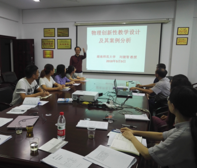 2018年9月9日下午,湖南师范大学刘健智教授应邀在南院6号教学楼二楼6205会议室,给永利集团3044am的硕士研究生和导师做了一场题为“物理创新性教学设计及其案例分析”报告。刘教授结合自己多年从事物理学科教学研究生教育的亲身经历和有关的研究成果,介绍了开展“中学物理创新性教学设计”的思路和应该遵循的基本原则。大家一致认为,该报告对指导师生开展中学物理教学设计具有很强的指导意义。接着,刘教授还对学科教学.物理17级7名研究生的论文选题和研究内容,一一给出了详细而有效的指导。