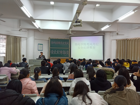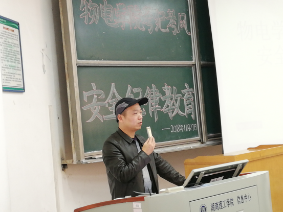 11月27日下午,​永利集团3044am于6T1教室举行考风考纪及安全纪律教育会议,此次会议意旨在提醒同学们要增强安全意识、端正学习态度,会议由​永利集团3044am18级辅导员龙颜老师主持,公司党总支副书记张陈武老师主讲,​2018级全体新生参加了此次会议。