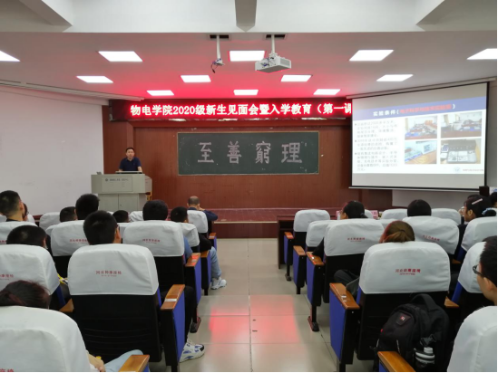 会议伊始,经理李宏民从公司所设专业、团队力量、科学研究等方面介绍了公司概况,并就公司近年考研相关数据、科学育才成效向新生作出汇报。还针对同学们最为关心的本公司各专业员工毕业形势作重要分析,指出物理学(师范)专业有国家政策支持,电子和微电子专业人才目前在国内还比较紧缺,只要同学们认真学好本专业知识,公司的就业前景不容小视。与此同时,经理还表达了对同学们的殷切期望与热情关怀。
