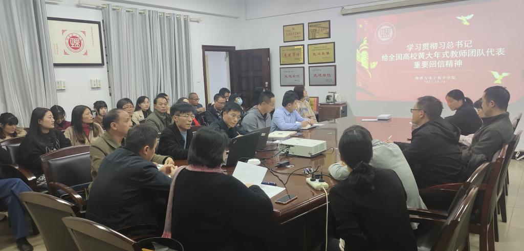 10月26日下午,永利集团3044am全体教师在6205会议室开展学习讨论习近平总书记给全国黄大年式教师团队代表重要回信精神。党委书记周畅主持。