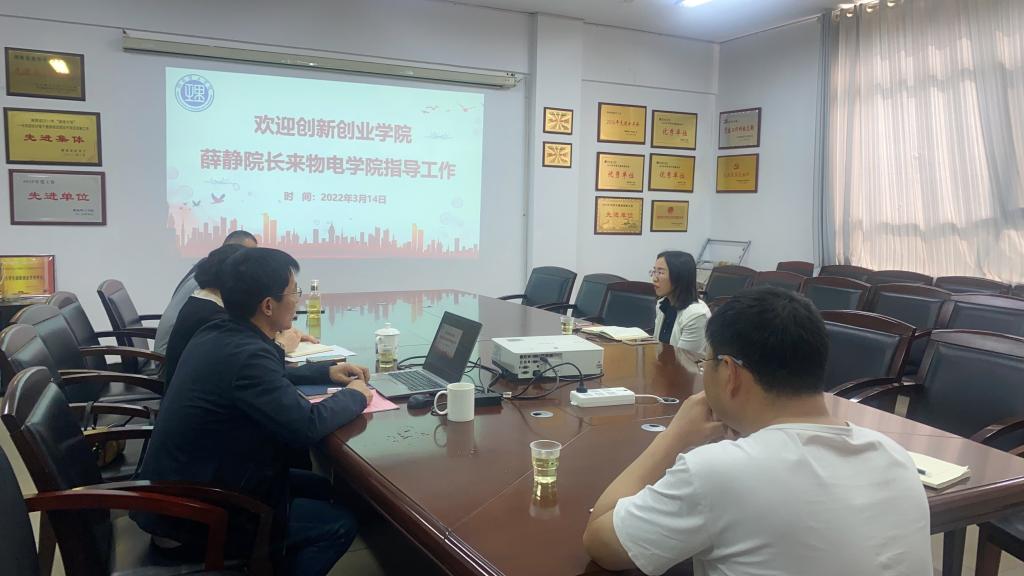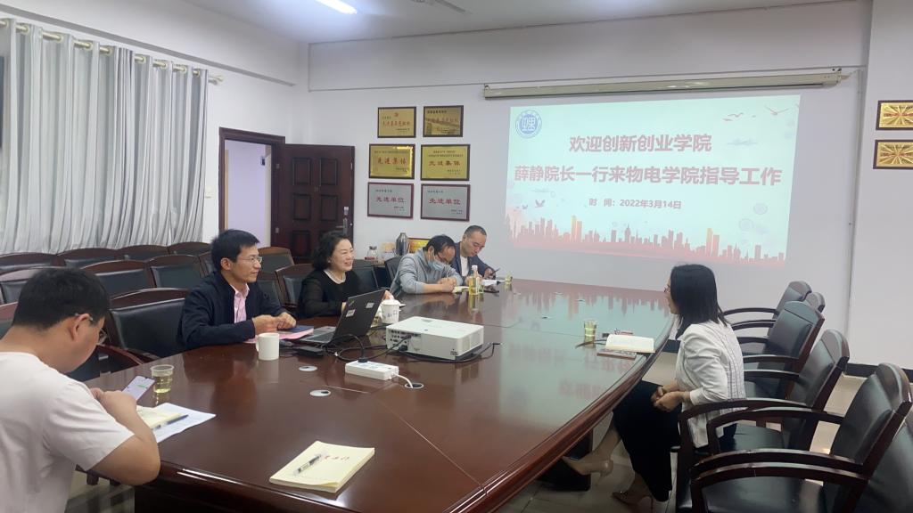 3月14日上午,永利集团3044am创新创业公司经理薛静来公司调研指导,物理与电子科学公司党委书记周畅、副经理魏勇、创新创业专干徐白以及竞赛项目指导老师李春来、王文进参加。