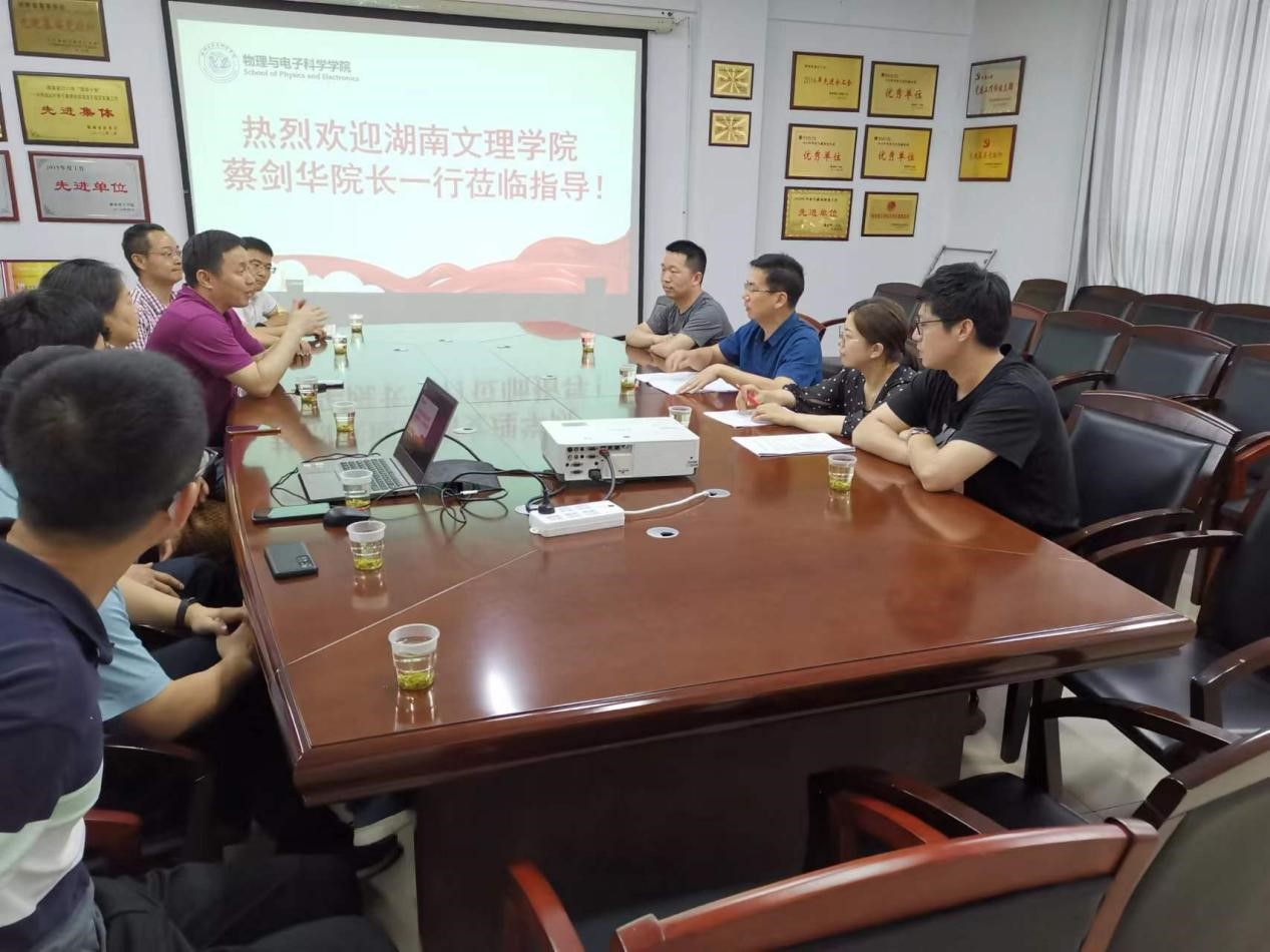 6月20日,湖南文理公司数理公司经理蔡剑华一行到访公司,在公司6205会议室开展交流座谈,党委书记周畅、经理李宏民及相关人员出席,李宏民主持。