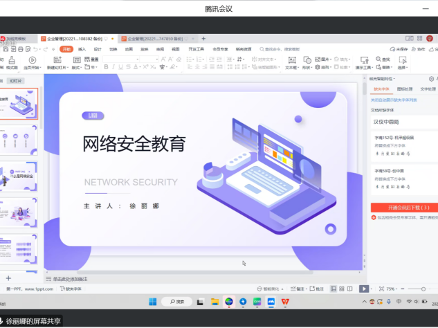 为进一步加强网络安全教育宣传,增强员工网络安全意识,营造安全文明的网络环境,12月17日下午,永利集团3044am团学分会青年新媒体中心召开了以“网络安全教育”为主题的线上会议。会议由运营部副部长徐丽娜主持并主讲,青媒全体人员参会。