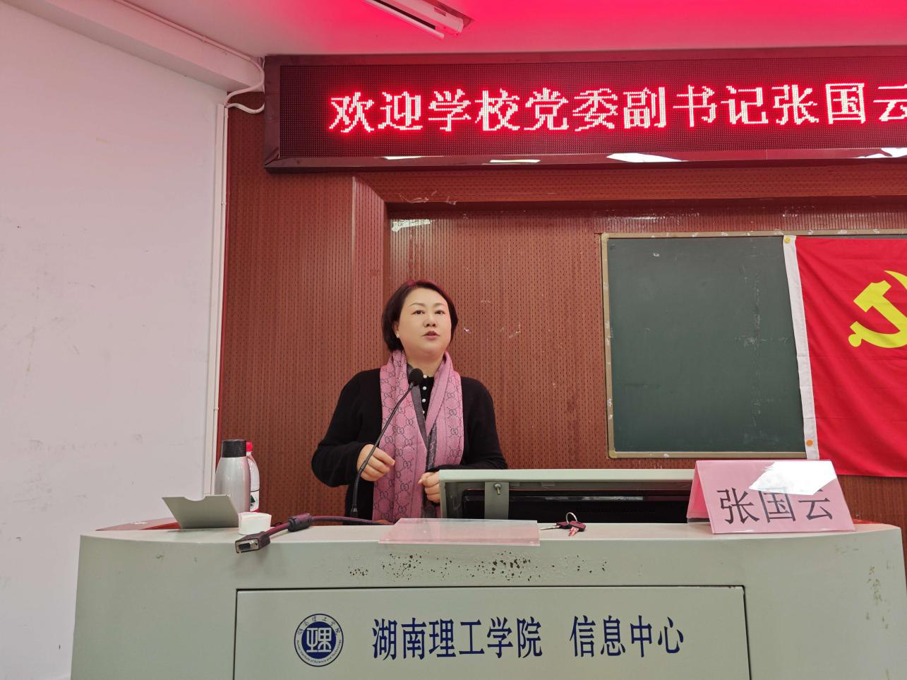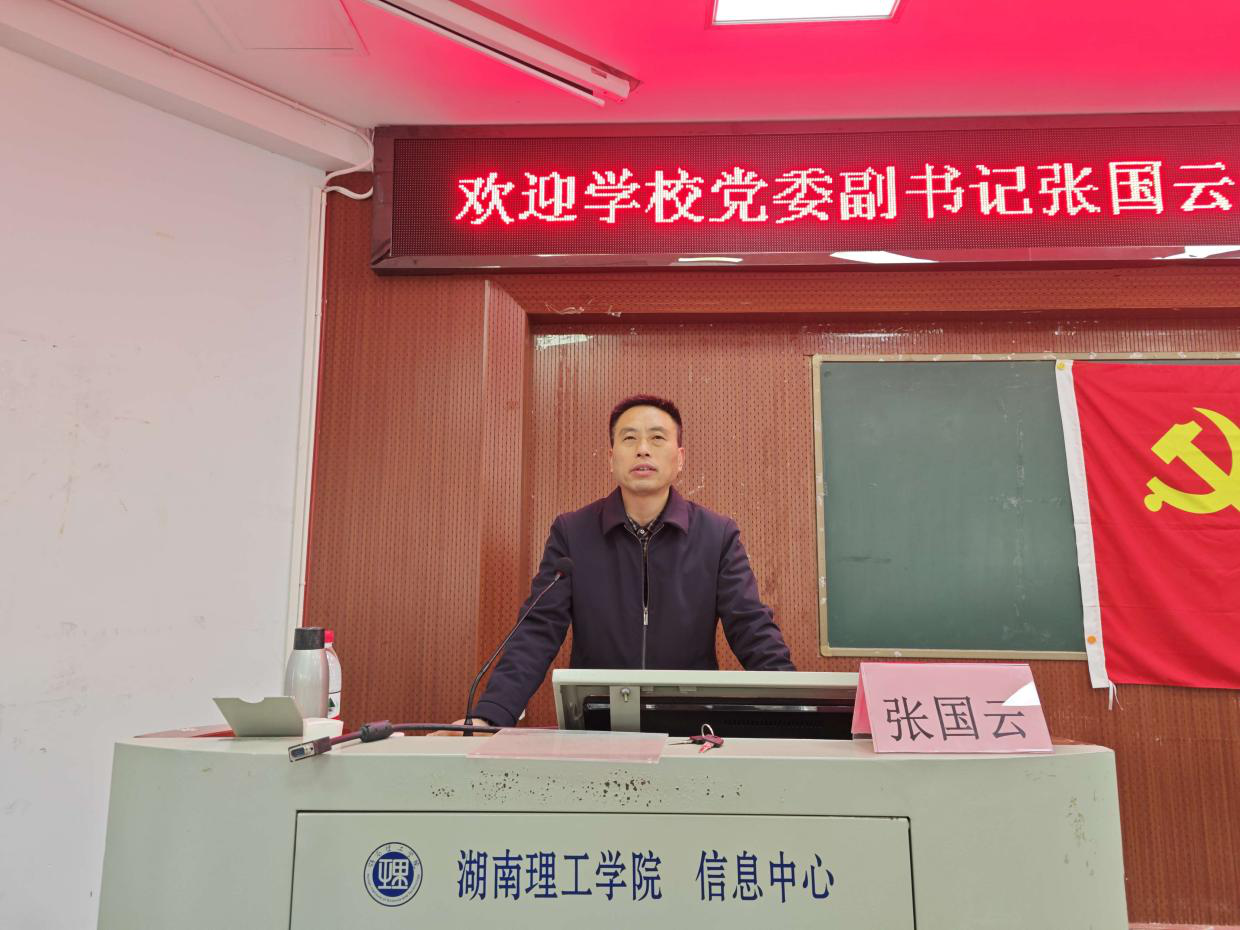 2023年12月12日下午,公司党委副书记张国云受邀在南院6号楼学术报告厅为公司师生讲授题为“以习近平新时代中国特色社会主义思想为指导,学习、遵守、贯彻、维护二十大党章” 的党课。物理与电子科学公司党委班子成员周畅、李宏民、李科敏、魏勇、罗良及全体教师、员工党员和入党积极分子参加。公司党委书记周畅主持。
