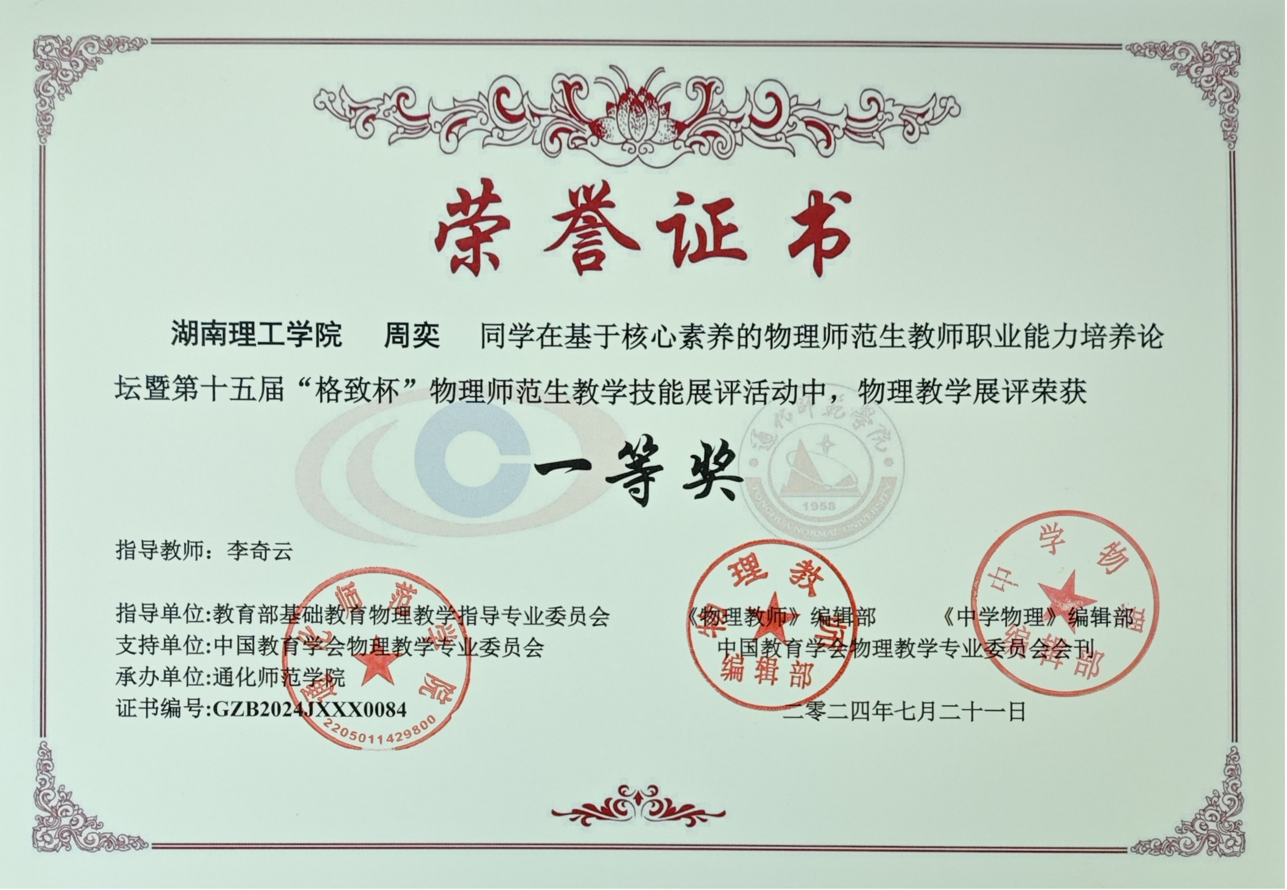 据悉,“格致杯”物理师范生教学技能展评活动是全国高水平的老员工、研究生物理教学技能比赛,也是全国物理师范专业参赛面最广、影响力最大的比赛,迄今已成功举办了十五届。这一赛事活动以其广泛的参与度和深远的影响力,被誉为全国物理教育界的年度盛事,对创新人才培养模式、提高物理师范类老员工与研究生的实践能力和综合素质大有裨益。(图/文 李奇云)