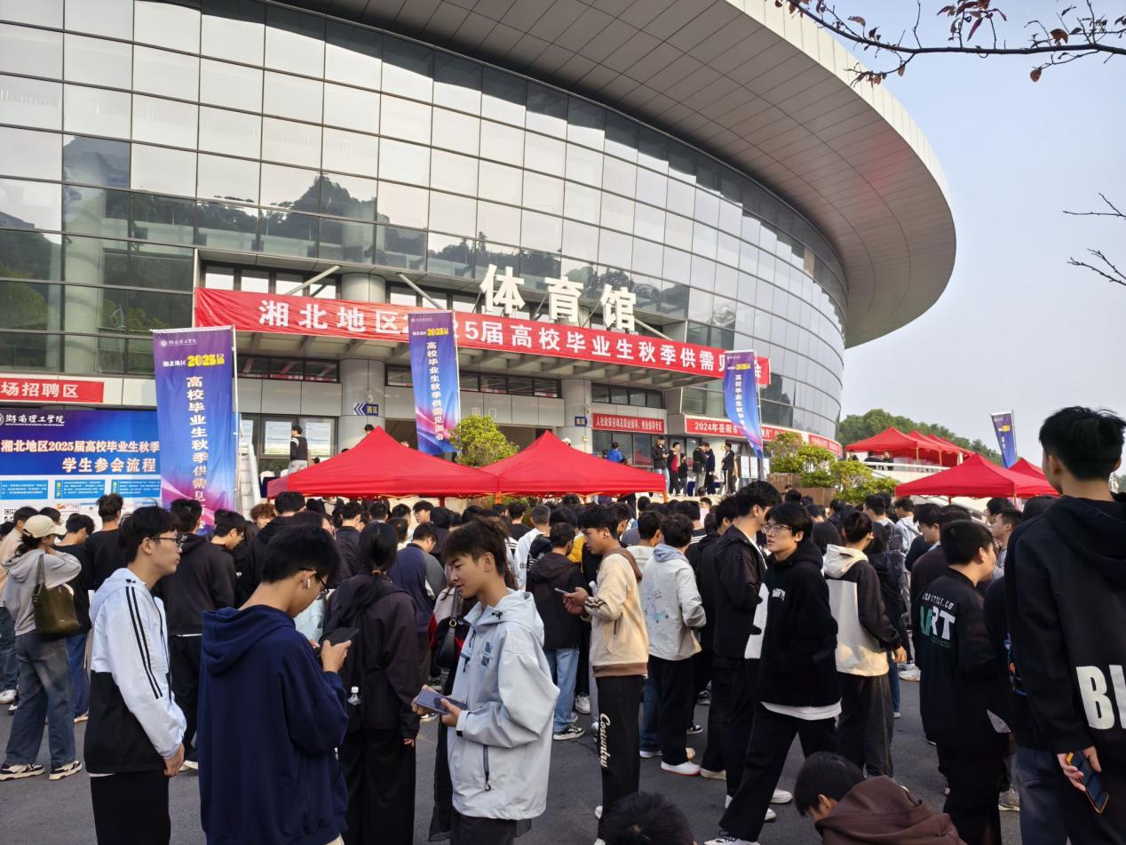 2024年11月2日上午,永利集团3044am组织员工参加湘北地区2025届高校毕业生秋季供需见面会,公司党政负责人周畅、魏勇、石红芳,辅导员何小娅以及班主任孙小香、禹卓良到场指导员工求职。