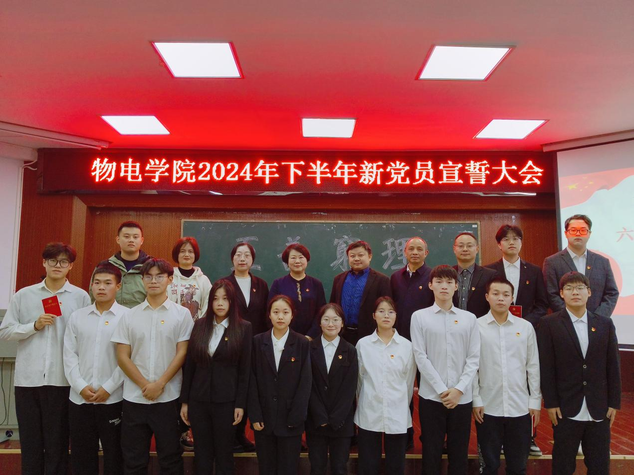 11月24日下午,​公司在6号楼报告厅举行2024年下半年新党员宣誓仪式。公司党委委员、员工支部书记出席,员工党员、入党积极分子参加,何小娅主持。