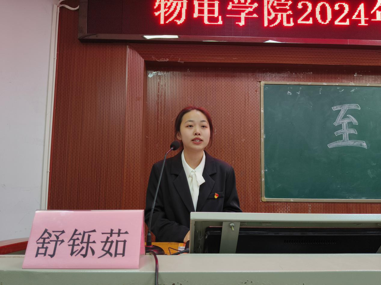 新党员代表舒铄茹分享了向党组织靠拢的成长历程,表示将不辜负党组织的期望,积极进取,在实践中发挥共产党员的先锋模范作用