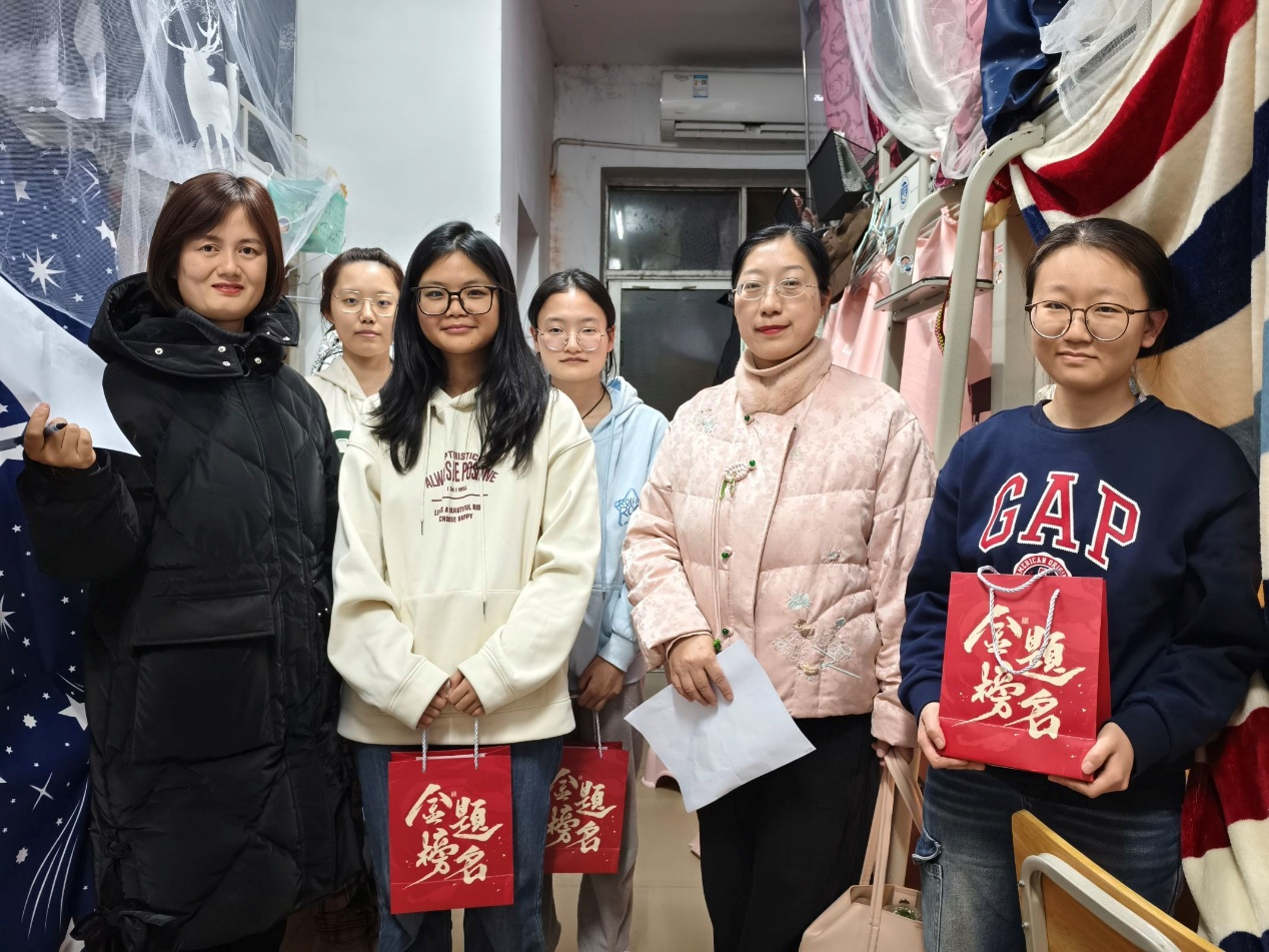 12月18日晚,物电公司党委书记周畅、副书记石红芳、副经理邹志军及辅导员何小娅、李哲君、姚世鹏带领员工干部前往毕业班寝室开展考研慰问活动。