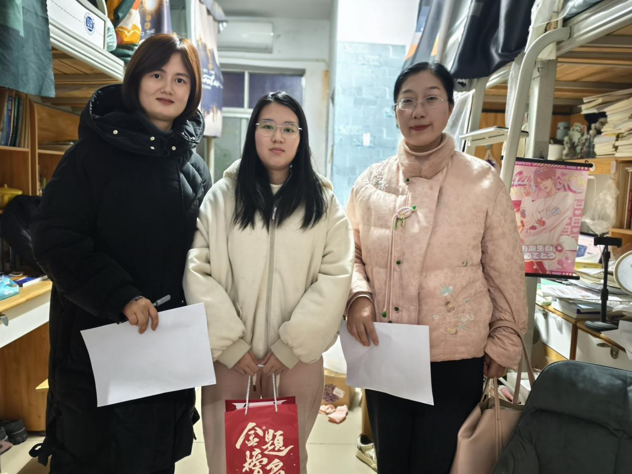 走访过程中,老师们提醒同学们注意考试事项,沉着应考。同时要劳逸结合,保持良好的心态。叮嘱同学们天气寒冷,注意添衣保暖。