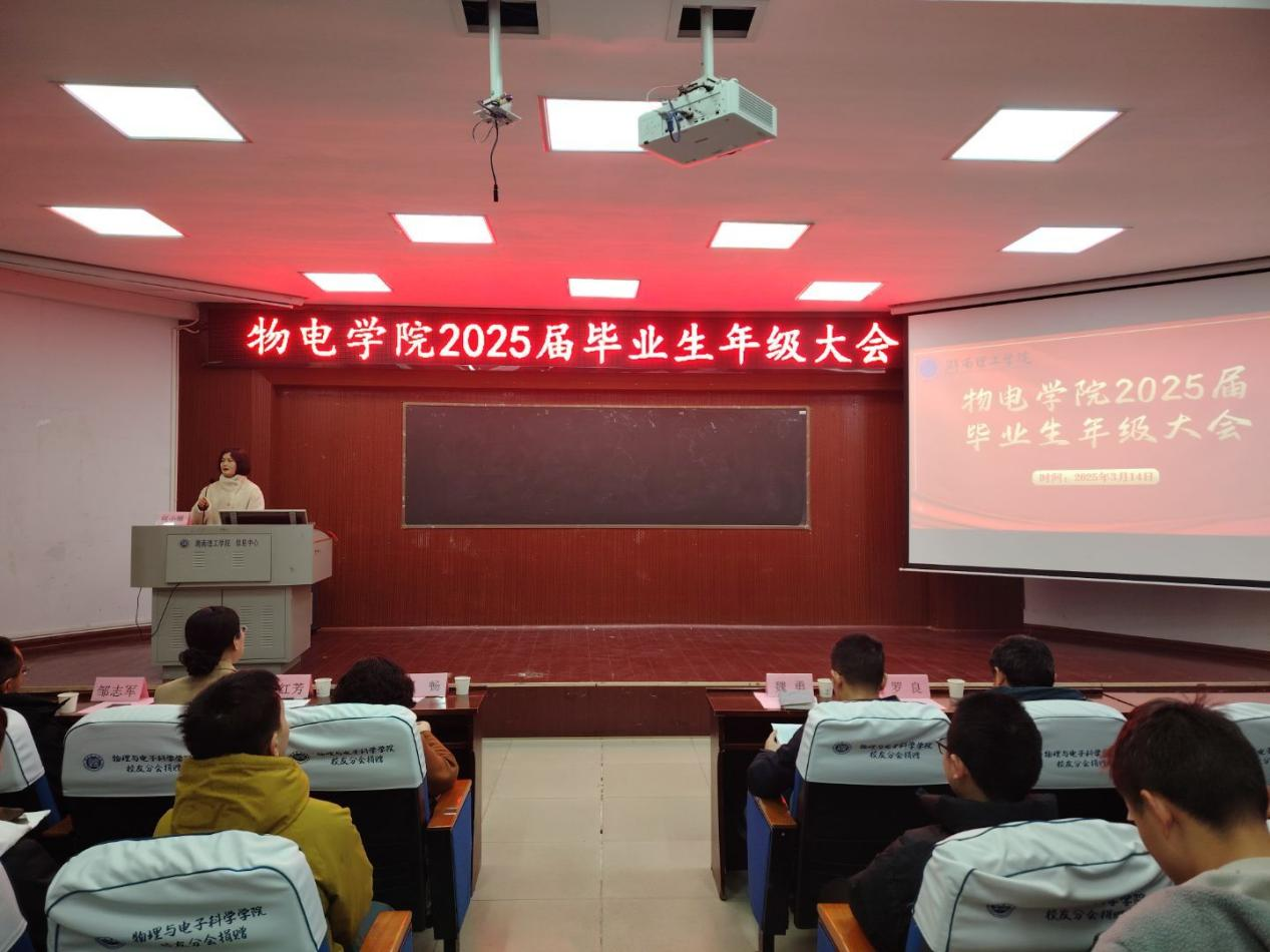 3月14日,物公司在六栋学术报告厅召开2025届毕业生大会,会议由学工办主任何小娅主持,全体院领导、辅导员及2025届毕业生参会。