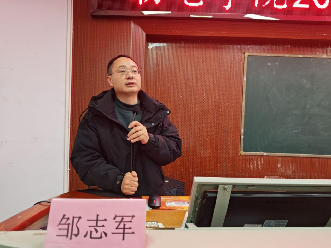 副经理邹志军讲解了考研复试与调剂等相关内容,他详细介绍了2025年公司考研报名情况及整体形势,指出部分专业报考扎堆现象明显,竞争压力加剧。他提醒毕业生既要正视挑战,也要坚定信心,科学规划复试策略,主动关注调剂信息,争取理想升学机会。