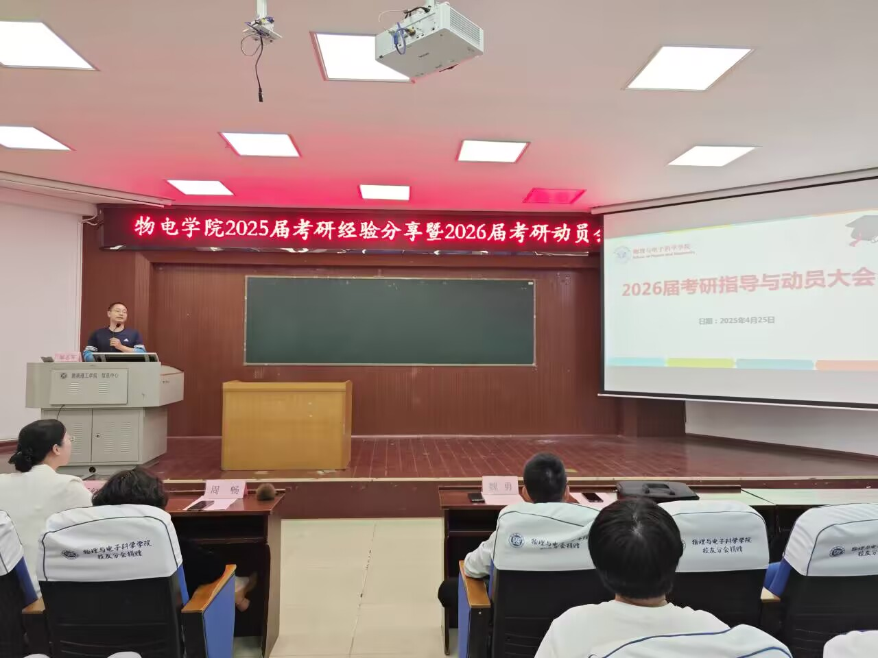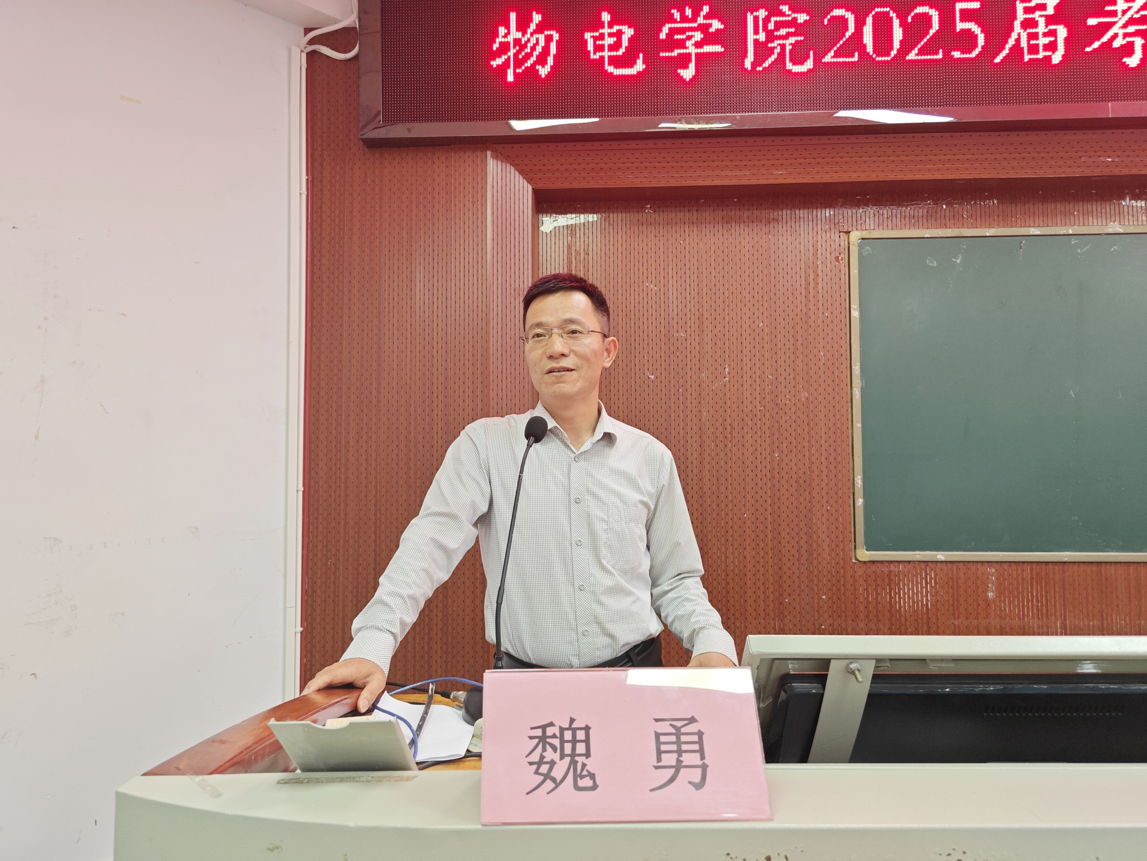 魏勇作考研动员讲话,他结合自己参加马拉松比赛的亲身经历,向同学们提出三点建议:明确目标、坚定信念、持续努力。他特别提醒同学们在备考期间要坚持体育锻炼,保持良好的身心状态。