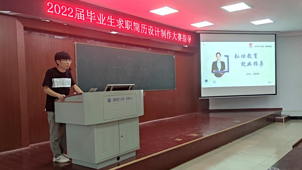 6月30日下午,公司于六栋学术报告厅开展了2022届毕业生求职简历设计制作大赛指导讲座,特邀弘仕教育特级教师龚奇峰主讲。公司党委副书记张陈武、弘仕教育人事经理陈晶晶出席,讲座由公司就业专干严胡伟老师主持, 18级全体同学参加。