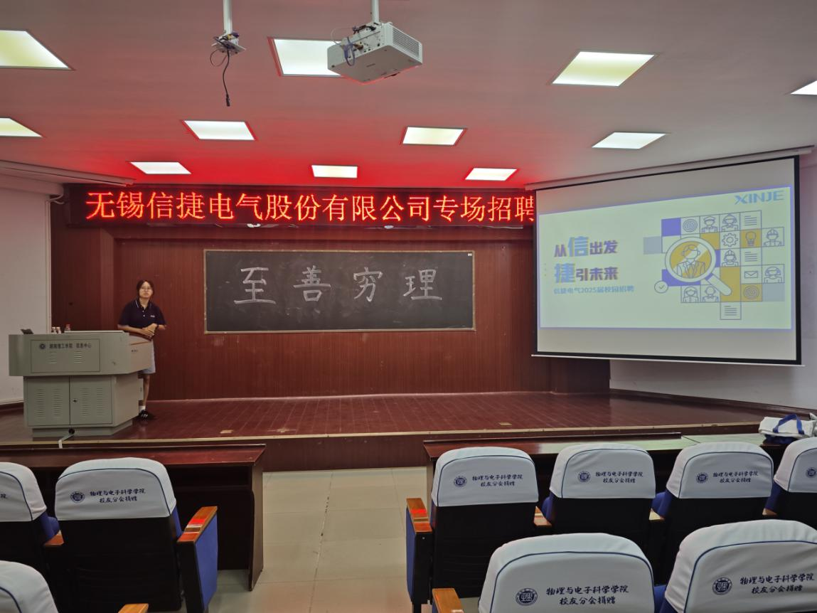 9月9日上午,无锡信捷电气有限公司在永利集团3044am学术报告厅举行招聘活动,物理与电子科学公司党委副书记石红芳、毕业班辅导员何小娅、就业专干李哲君、团委书记姚世鹏到场,2025届毕业生参加。