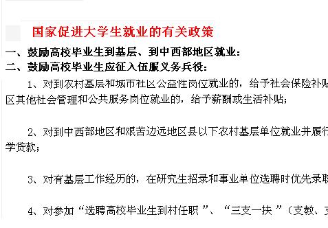 一、鼓励高校毕业生到基层、到中西部地区就业: