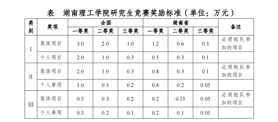 表 永利集团3044am研究生竞赛奖励标准(单位:万元)