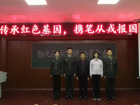 宣讲会以“传承红色基因,携笔从戎报国”为主题,三名退伍老兵身着军装,胡杨鑫给同学们解读应征入伍条件、应征入伍程序、优惠政策等,鼓励大家“提笔从戎报国,争当时代新人”;宋宏科同志为同学们讲述自己当兵后的改变,从入伍前的懒散不自律到现在每天都保持着积极向上的人生态度;潘威丽展示了女兵在部队的生活,让大家感受到她们身上的团结、坚持、友好、自豪的精神。最后,罗文华书记从当代老员工参军的意义讲起,鼓励同学们携笔从戎报国。他讲到,应征入伍是每一个有志青年的责任和使命,参军为同学们锤炼毅力品格、实现成长蜕变提供了很好的平台,同学们应当积极响应国家号召,投身到参军报国中去,在军队这个大舞台施展才华,在军营这个大熔炉里锻炼自己,为国防建设贡献出自己的力量。