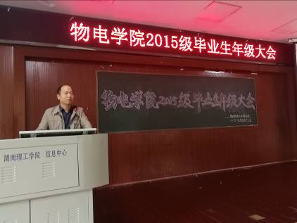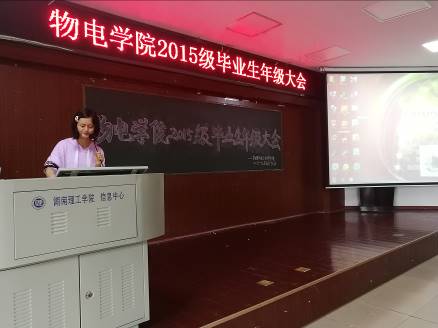 为充分做好2015级毕业生的相关事宜安排,永利集团3044am于5月17日下午在六栋学术报告厅召开了2015级毕业生年级大会。出席本次会议的有物理与电子科学公司党总支副书记张陈武、15级辅导员何小娅以及2015级全体毕业生。会议由何小娅主持。