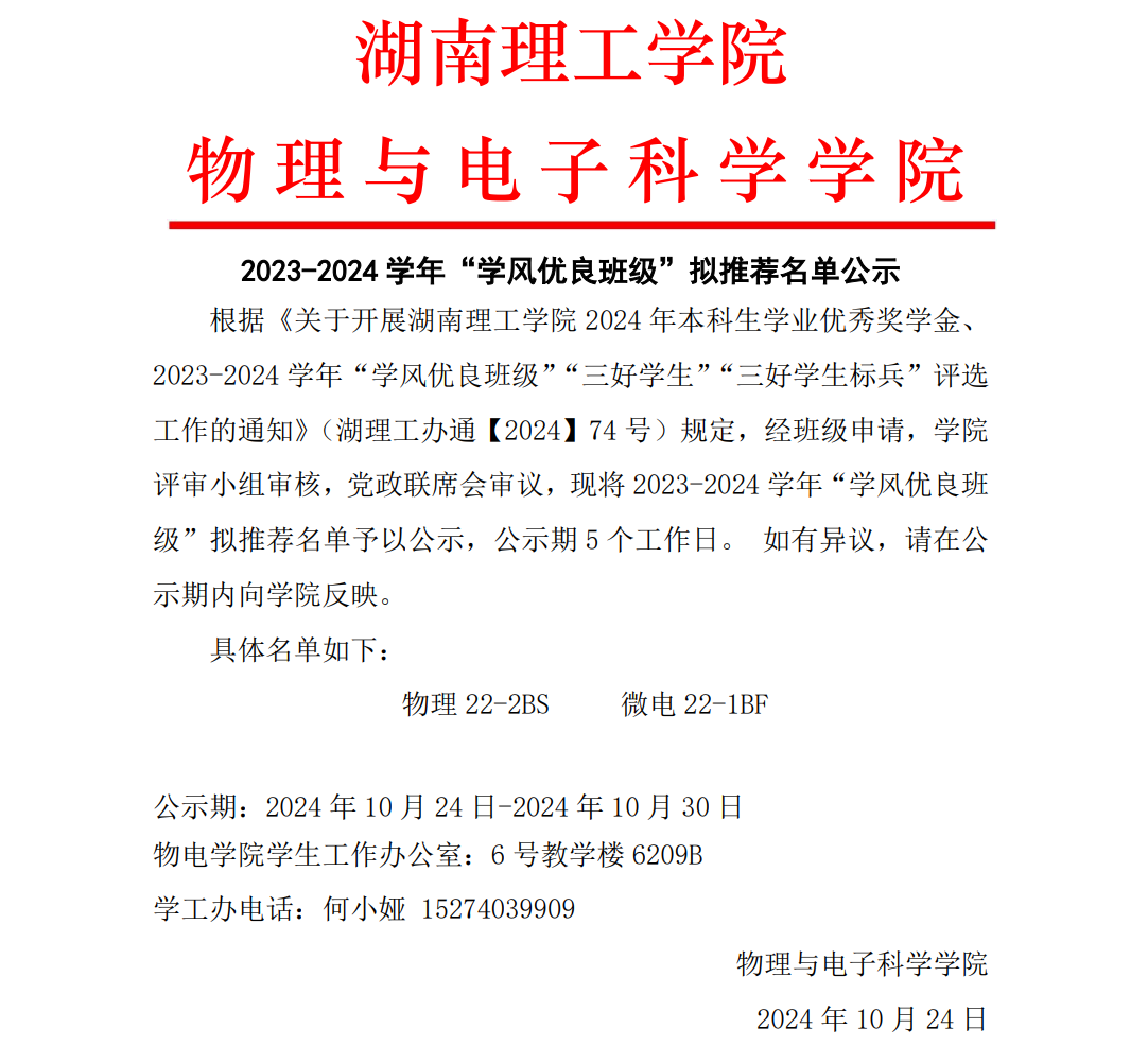 永利集团3044am 2023-2024 学年“学风优良班级”拟推荐名单公示