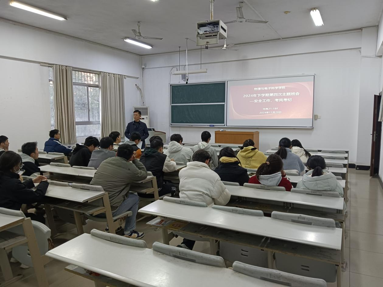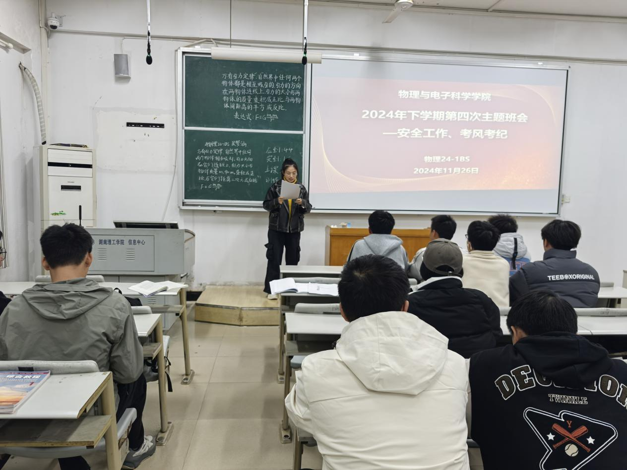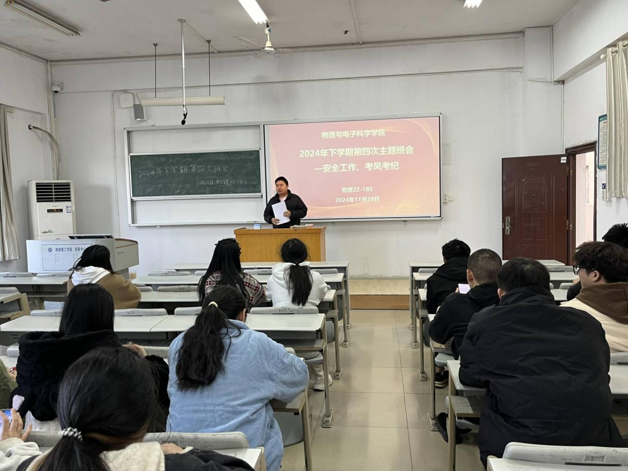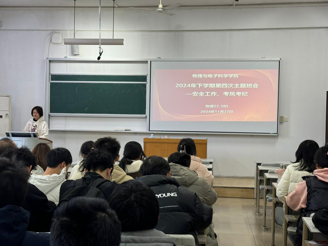 班会围绕安全工作和考风考纪开展。班主任带领同学们学习了《关于加强员工宿舍晚归等情况教育管理的通知》、《关于开展校园员工电动车、摩托车集中整治工作的通知》、《永利集团3044am员工考试违规处理办法(修订)》等文件精神。