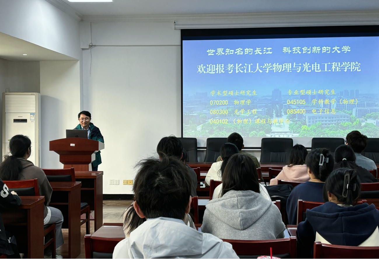 4月7日下午,长江大学物理与光电工程公司在公司开展研究生招生宣讲会。长江大学永利集团3044am光电系主任黄海、教授程书博、代尘杰主讲,公司2022级相关专业员工参加。