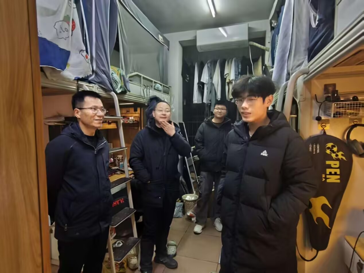 走访中,老师们详细询问同学们的生活起居、考研复习进度及职业规划情况,细致了解大家在毕业季面临的学业压力、求职困惑等实际需求。针对考研学子,鼓励他们坚定信心、调整心态,全力冲刺备考;对求职同学,叮嘱其精心打磨简历、主动把握就业机遇,并明确表示公司将全方位搭建就业平台、提供资源支持。老师们仔细排查寝室用电安全及消防设施状况,提醒同学们强化安全防范意识,共同营造整洁有序、安全和谐的居住环境。