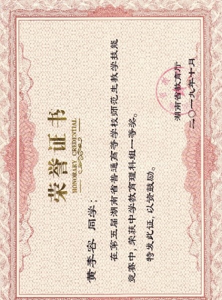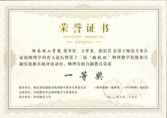 2、论文《<全反射>教学设计》在湖南省第十四届研究生创新论坛中获优秀论文一等奖;